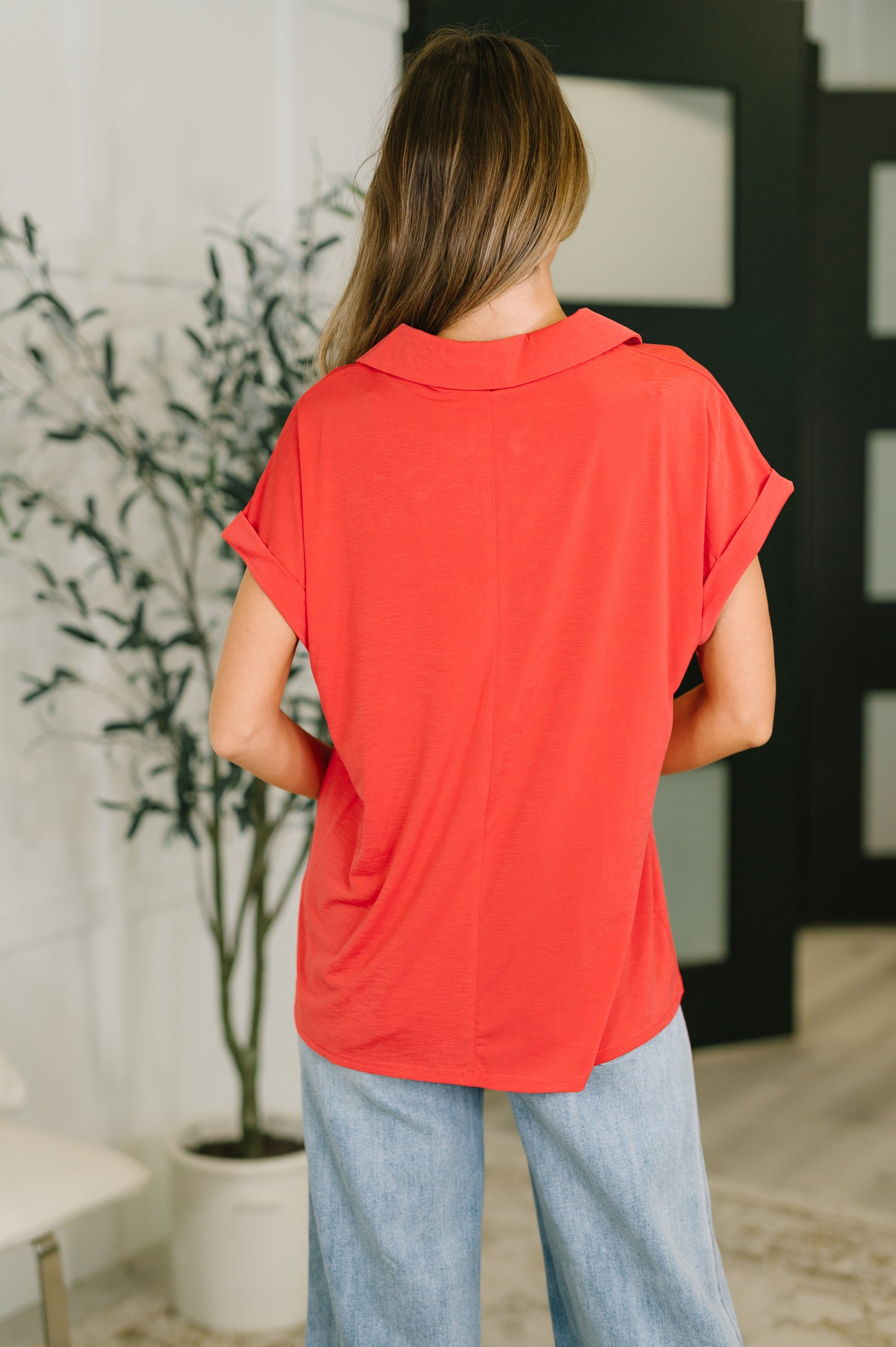 Sea You Soon Collared Top in Hot Coral